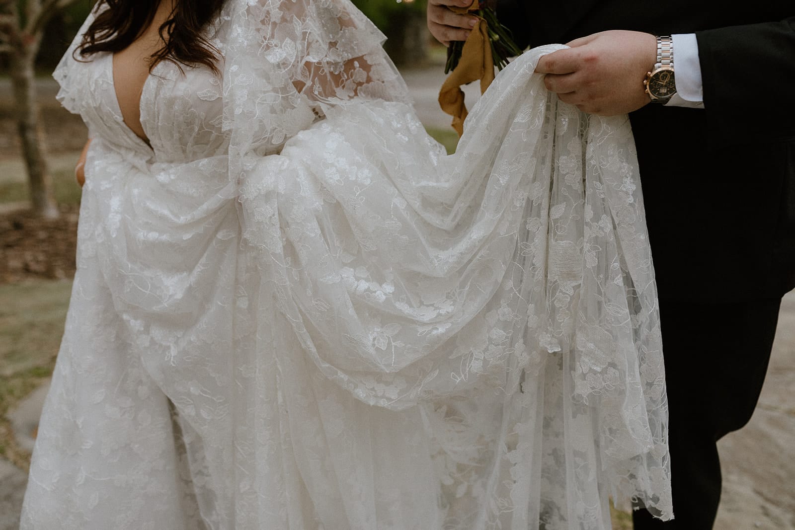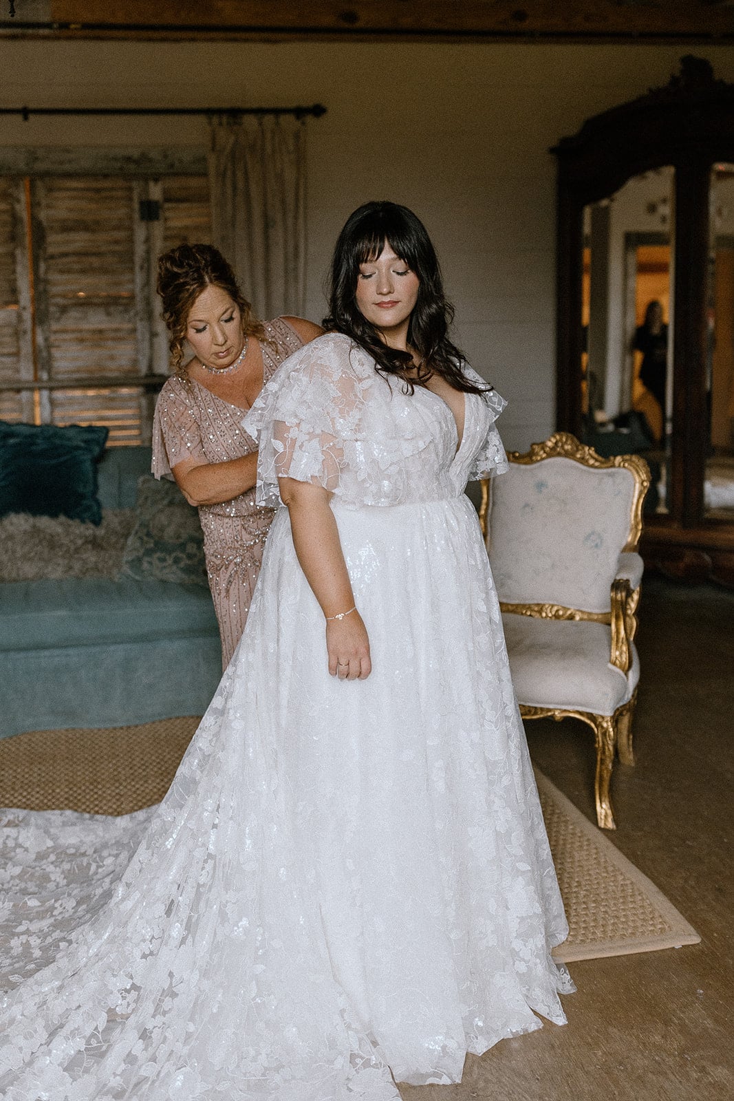 As a plus-size bride, Maddie initially feared that finding the perfect dress would be difficult. She wanted a gown with sleeves that were intentionally designed for her body type, not an afterthought. She found exactly what she was looking for in the Nera gown by Studio Levana.