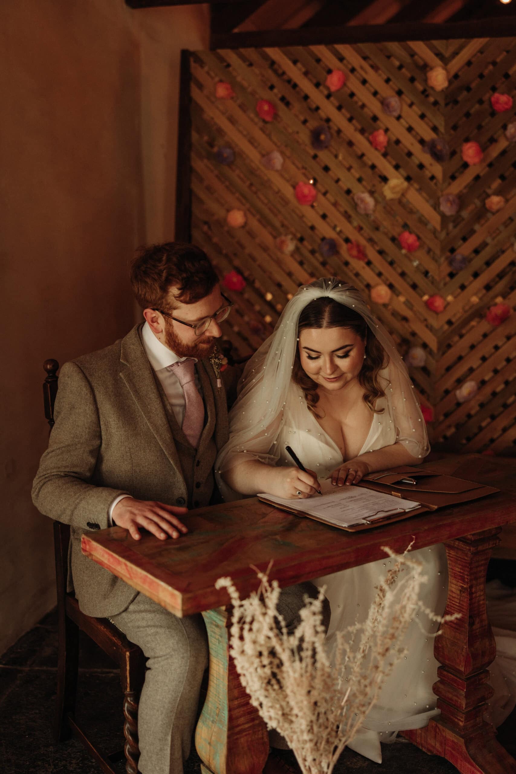 Charlotte and Patrick took a DIY approach to their wedding on March 30, creating paper flowers, dried flower centerpieces, and even embroidering napkins with guests’ initials. Their wedding day was filled with unforgettable moments, from Charlotte walking down the aisle to a wedding march/ABBA mash-up played by her father, to giving Patrick an embroidered handkerchief saying “Happy Tears Only” as he cried at the altar.