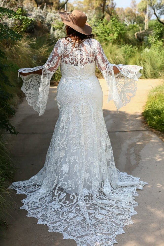 Introducing Alexis: a boho-inspired bridal dress that exudes effortless charm. With intricate lace bodice, a flattering mermaid silhouette, and captivating sleeves, Alexis is designed to turn heads and make you feel like a bohemian goddess on your special day. Embrace elegance and free-spirited beauty.