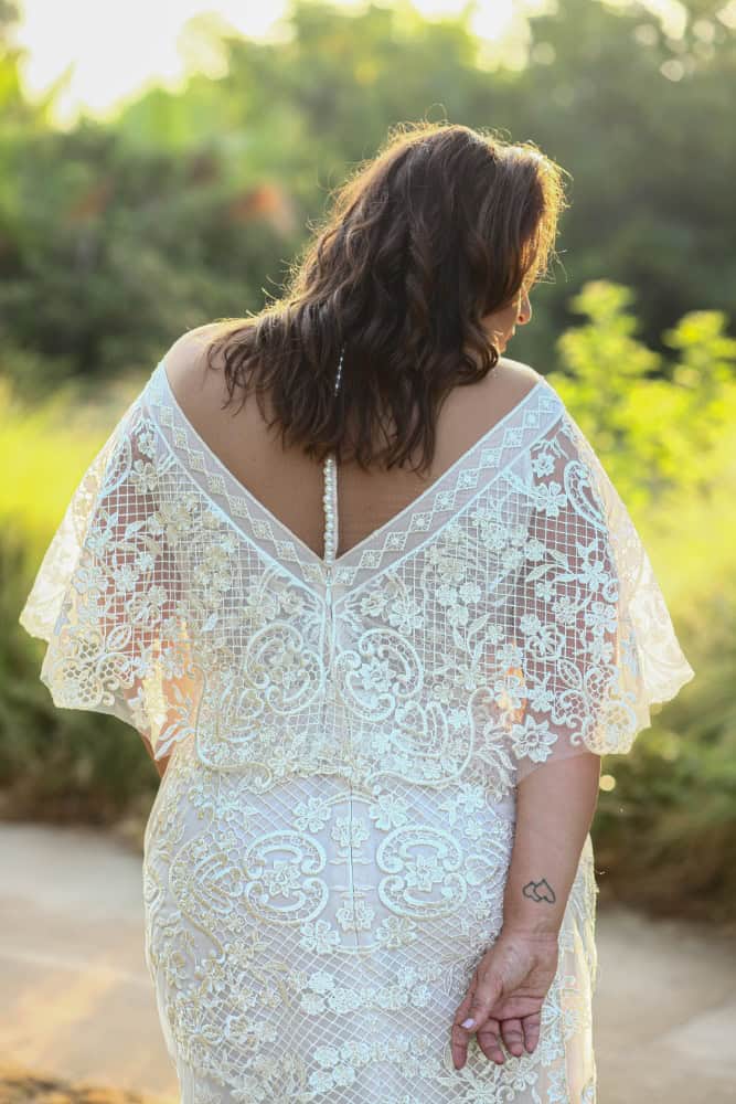 Admire the appeal of Luna, a bohemian wedding dress with couture lace and a distinctive design that radiates vintage charm. This lovely work of art is designed to make you feel confident and sexy, with delicate lace detailing adding elegance. Embrace your inner divinity and captivate everyone with Luna.