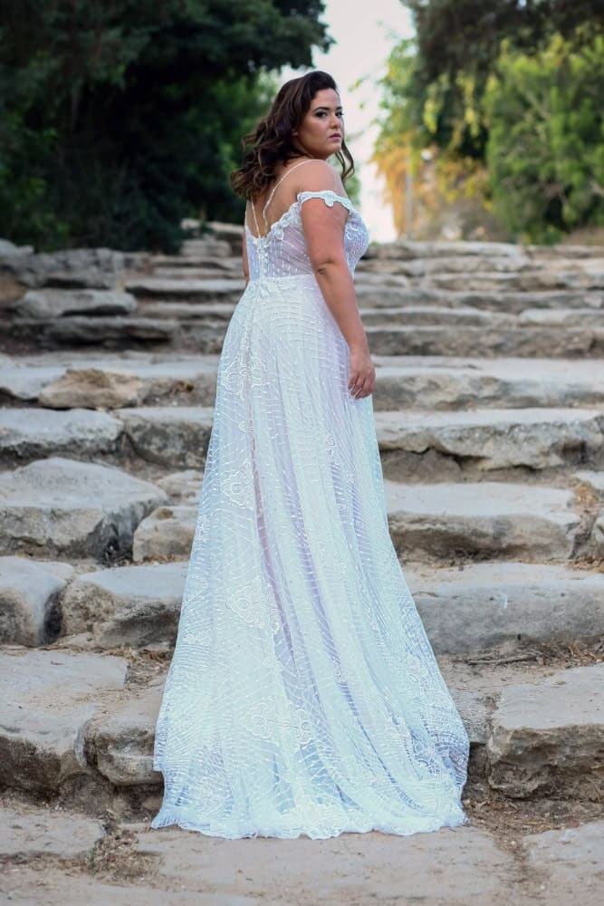 Feel like a queen in the stunning Nathale gown! Featuring a delicate combination of lace and tulle, this dress exudes romantic elegance. The fitted bodice and flowing skirt create a fairytale look, making Nathale the perfect choice for brides who want to feel like royalty on their special day.