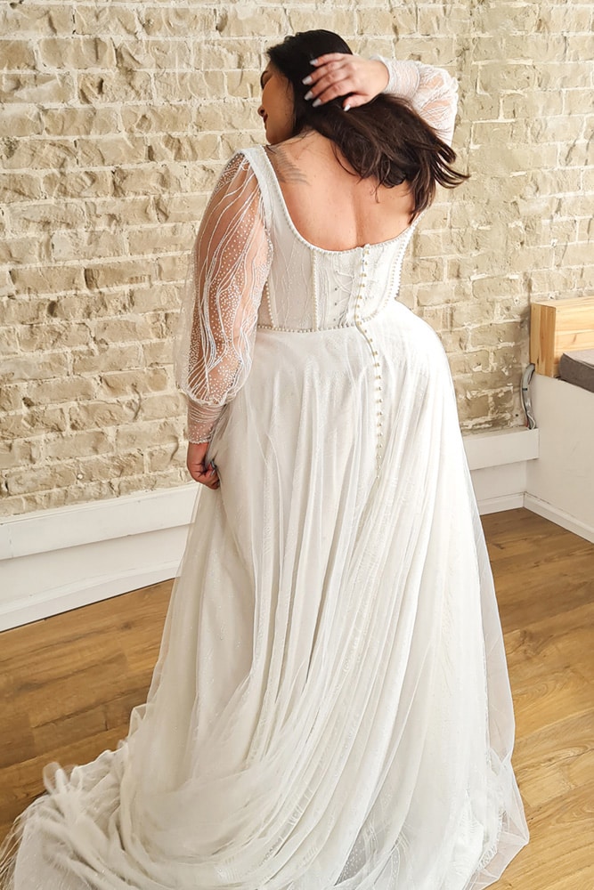 At Studio Levana, we cherish the uniqueness of every bride-to-be. We believe that your wedding gown should be as exceptional as you are. That’s why we’re thrilled to offer an array of customization options tailored just for you. Whether it’s selecting the ideal color, adding sleeves that speak to your individuality, tweaking the skirt to perfection, or adjusting necklines and backs to suit your preferences, the possibilities are boundless. And let’s not forget about enhancing corset support for that extra confidence boost! Our seasoned team is dedicated to walking alongside you throughout the customization journey, ensuring that every stitch reflects your personal style and dreams for your special day. Let’s create something truly unforgettable together!